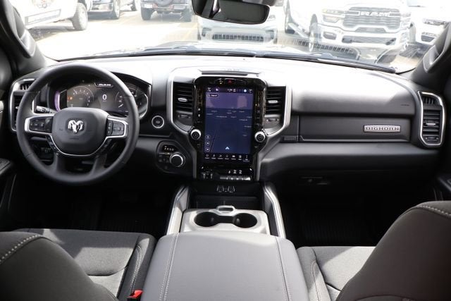 $8,705 off MSRP! 115V Auxiliary Power Outlet, 115V Auxiliary Rear Power Outlet, 12" Touchscreen Display, 2nd Row in Floor Storage Bins, 3 Rear Seat Head Restraints, 3.92 Rear Axle Ratio, 33 Gallon Fuel Tank, 4 Way Front Headrests, 400W Inverter, 4G LTE Wi-Fi Hot Spot, 9 Amplified Speakers with Subwoofer, ABS brakes, Accent Color Door Handles, Accent Color Premium Power Mirrors, Accent Color Tailgate Handle, Active Cruise Control, Air Conditioning ATC with Dual Zone Control, Alloy Wheels, Anti-Spin Differential Rear Axle, Apple CarPlay, Auto Power-Folding Mirrors, Auto-Dimming Exterior Driver Mirror, Auto-Dimming Rear-View Mirror, Big Horn Level 2 Equipment Group, Black Exterior Mirrors, Black Exterior Truck Badging, Black Headlamp Bezels, Black Interior Accents, Black Painted Exterior Mirrors Caps, Black Premium Power Mirrors, Black Tail Lamp Bezels, Body Color Fender Flares, Body Color Front Bumper, Body Color Rear Bumper with Step Pads, Bucket Seats, Center Console Parts Module, Cluster 12" TFT Color Display, Compass, Configurable Drive Mode, Connected Travel and Traffic Services, Connectivity - US/Canada, Convex Wide-Angle Exterior Mirror Insert, Deluxe Cloth Bucket Seats, Disassociated Touchscreen Display, Dual Exhaust with Black Tips, Electronic Stability Control, Exterior Mirrors Courtesy Lamps, Exterior Mirrors with Heating Element, Exterior Mirrors with Supplemental Signals, Front Seat Back Map Pockets, Full Length Floor Console, Global Telematics Box Module, Glove Box Lamp, Google Android Auto, GPS Antenna Input, GPS Navigation, Grille Black Surround Black Mesh, HD Radio, Heated door mirrors, Heated Front Seats, Heated Steering Wheel, Illuminated entry, Integrated Center Stack Radio, Integrated Voice Command with Bluetooth®, Leather Wrapped Steering Wheel, LED Dome Lamp with on/Off Switch, LED Footwell Lighting, Low tire pressure warning, Manual Adjust 4-Way Front Passenger Seat, Manual Folding Exterior Mirrors, Media Hub with 2 Charge Only USBs, MOPAR Front and Rear Rubber Floor Mats, Night Edition, Overhead LED Lamps, ParkView Rear Back-Up Camera, Power 2-Way Driver Lumbar Adjust, Power Adjust 8-Way Driver Seat, Power Adjustable Pedals, Power Locks, Premium Overhead Console, Quick Order Package 21Z Big Horn, Radio: Uconnect 5 Navigation with 12.0" Display, RAM Grille Badge - Black, Rear 60/40 Folding Seat, Rear Center Armrest, Rear Power Sliding Window, Rear Window Defroster, Remote Tailgate Release, Security Alarm, SiriusXM Radio Service, SiriusXM with 360L, Steering Wheel Mounted Audio Controls, Sun Visors with Illuminated Vanity Mirrors, Traction control, Trailer Brake Control, Universal Garage Door Opener, USB Host Flip, Wheels: 20" x 9.0" Aluminum Painted Clad, Wheels: 20" x 9" Aluminum Chrome Clad. 2026 Ram 1500 Big Horn Night Edition 4D Crew Cab Night Edition Granite Crystal Metallic Clearcoat 4WD 8-Speed Automatic 3.0L I6