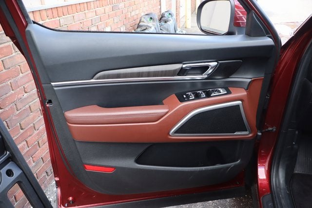 CARFAX One-Owner. Clean CARFAX. Dawning Red 2023 Kia Telluride EX AWD 8-Speed Automatic 3.8L V6 DGI DOHC Dual CVVT 2nd Row Captain Chairs, 3.648 Axle Ratio, EX Captain's Chair Package, Mahogany Interior Color Package, Navigation System, Power moonroof, Wheels: 20" x 7.5" Black Finish.