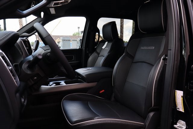 Diamond Black Crystal Pearlcoat 2025 Ram 2500 Laramie 4WD 8-Speed Automatic 6.7L I6 #1 Seat Foam Cushion, 115V Auxiliary Rear Power Outlet, 2 Way Rear Headrest Seat, 2nd Row In Floor Storage Bins, 3.42 Axle Ratio, 4 Way Front Headrests, 5th Wheel/Gooseneck Towing Prep Group, Active Lane Management System, Adaptive Steering System, Anti-Spin Differential Rear Axle, Auto Adjust In Reverse Exterior Mirrors, Auto Dim Exterior Mirror, Auto High Beam Headlamp Control, Auto Power-Folding Mirrors, Auto-Dimming Exterior Passenger Mirror, Bright Front Bumper, Bright Rear Bumper, Bucket Seats, Chrome Bumper Package, Chrome Exterior Mirrors, CTR Stop Lamp w/Cargo View Camera, Dash Pass Thru Wire Circuits, Drowsy Driver Detection, Dual Wireless Charging Pad, Exterior Mirrors Courtesy Lamps, Exterior Mirrors w/Heating Element, Exterior Mirrors w/Memory, Exterior Mirrors w/Supplemental Signals, Foam Bottle Insert (Door Trim Panel), Folding Flat Load Floor Storage, Forward & Reverse Utility Lights, Front Seat Back Map Pockets, Full Length Upgraded Floor Console, Heated Front Seats, Heated Steering Wheel, High Back Seats, I/P Mounted Auxiliary Switches, Laramie Level 1 Plus Equipment Group, Leather Trimmed Bucket Seats, LED Bed Lighting, Mirror Running Lights, MOPAR Deployable Bed Step, MOPAR Front & Rear Rubber Floor Mats, MOPAR Spray In Bedliner, Navigation System, Power 2-Way Driver Lumbar Adjust, Power 2-Way Passenger Lumbar Adjust, Power Adjust 8-Way Driver Seat, Power Adjust 8-Way Front Passenger Seat, Power Adjust Mirrors, Power Adjustable Convex Aux Mirrors, Power Adjustable Pedals w/Memory, Power Heated Fold Telescopic Mirrors w/Memory, Power Telescoping Mirrors, Quick Order Package 24H Laramie, Rain Sensitive Windshield Wipers, Rear 60/40 Folding Seat, Remote Tailgate Release, Traffic Sign Recognition, Wheels: 18" x 8.0" Diam Cut Alum w/Blk Pt Pock.